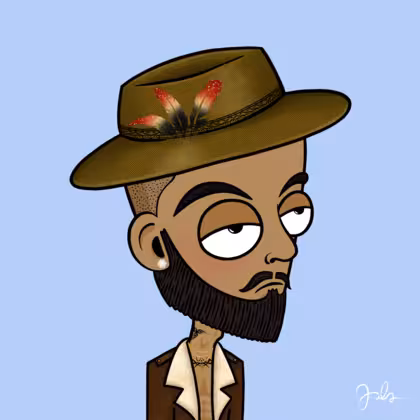 Collection Depressed Citizens Artist Juls Description ART. No team, no project, no future. Depressed Citizens is an urban & existential Art expression on Ordinals. In a parallel universe, "THEI" control us. DC unites against toxic society, encouraging critical thinking. 100% hand made collection that took Juls more than 6 months of daily work. Name Citizen#2412 Origin Hispanic Gender Man Necklace Gold layered necklace Hat Fedora hat Mustache Beard Garibaldis beard Glasses No Glasses Earrings Diamond earring Hair Style Shaved head Clothes Not visible T-shirt Tattoo Dragon tattoo Star Background Without stars