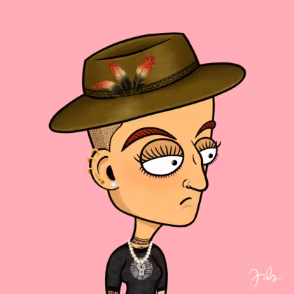 Collection Depressed Citizens Artist Juls Description ART. No team, no project, no future. Depressed Citizens is an urban & existential Art expression on Ordinals. In a parallel universe, "THEI" control us. DC unites against toxic society, encouraging critical thinking. 100% hand made collection that took Juls more than 6 months of daily work. Name Citizen#1775 Origin Caucasian non hispanic Gender Woman Necklace Pearl necklace Hat Fedora hat Mustache Beard No beard Glasses No Glasses Earrings Upper lobe strass Hair Style Shaved head Clothes BLM women shirt Tattoo Maya tattoo Star Background Without stars