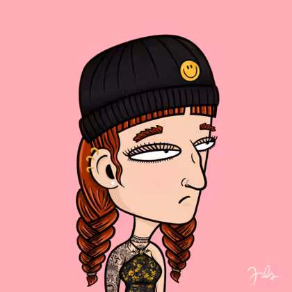 Collection Depressed Citizens Artist Juls Description ART. No team, no project, no future. Depressed Citizens is an urban & existential Art expression on Ordinals. In a parallel universe, "THEI" control us. DC unites against toxic society, encouraging critical thinking. 100% hand made collection that took Juls more than 6 months of daily work. Name Citizen#85 Origin Caucasian non hispanic Gender Woman Necklace No Necklace Hat Smiley beanie Mustache Beard No beard Glasses No Glasses Earrings Helix ring trio Hair Style Double braids with bangs Clothes Golden black halterneck top Tattoo Maya tattoo Star Background Without stars