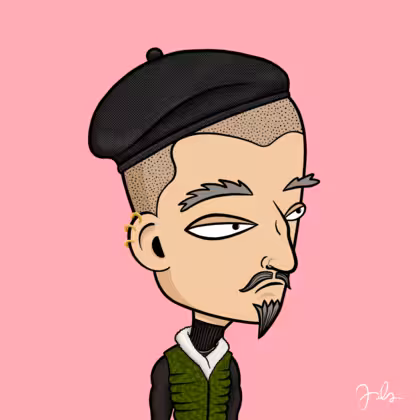 Collection Depressed Citizens Artist Juls Description ART. No team, no project, no future. Depressed Citizens is an urban & existential Art expression on Ordinals. In a parallel universe, "THEI" control us. DC unites against toxic society, encouraging critical thinking. 100% hand made collection that took Juls more than 6 months of daily work. Name Citizen#3165 Origin Caucasian non hispanic Gender Man Necklace No Necklace Hat Black beret Mustache Beard Handlebar & chin puff Glasses No Glasses Earrings Helix ring trio Hair Style Shaved head Clothes Black turtleneck men's sweater Tattoo No Tattoo Star Background Without stars